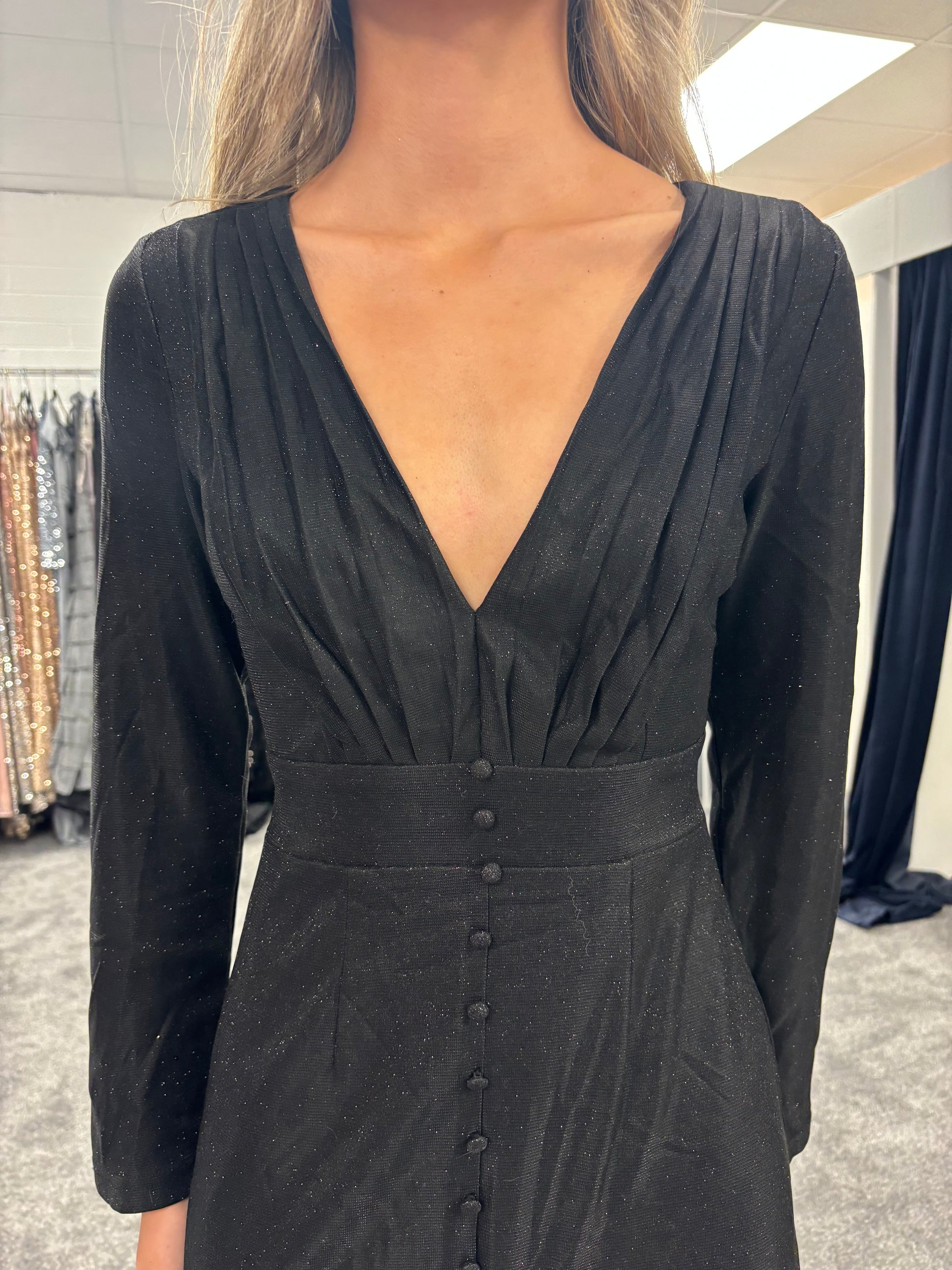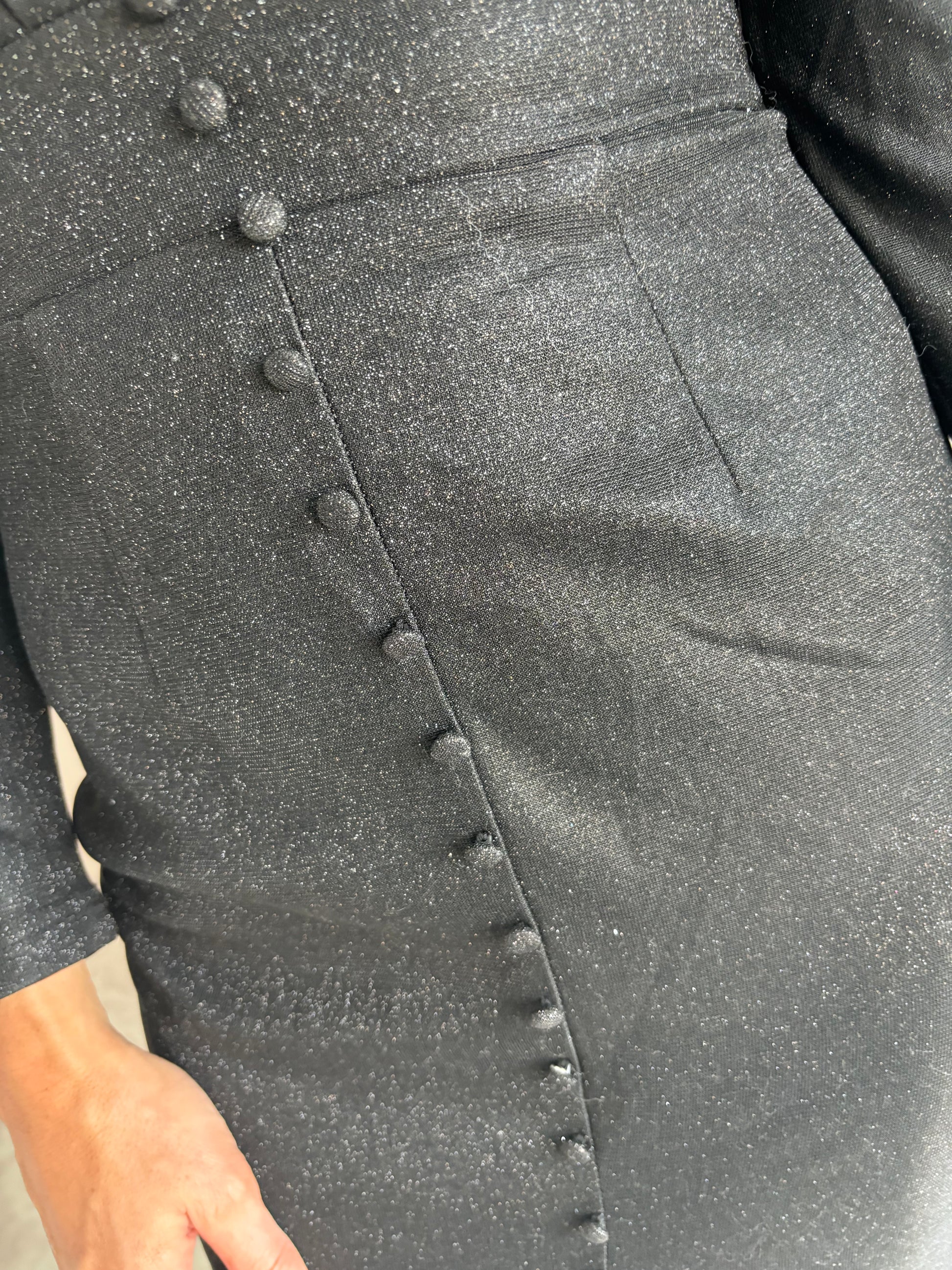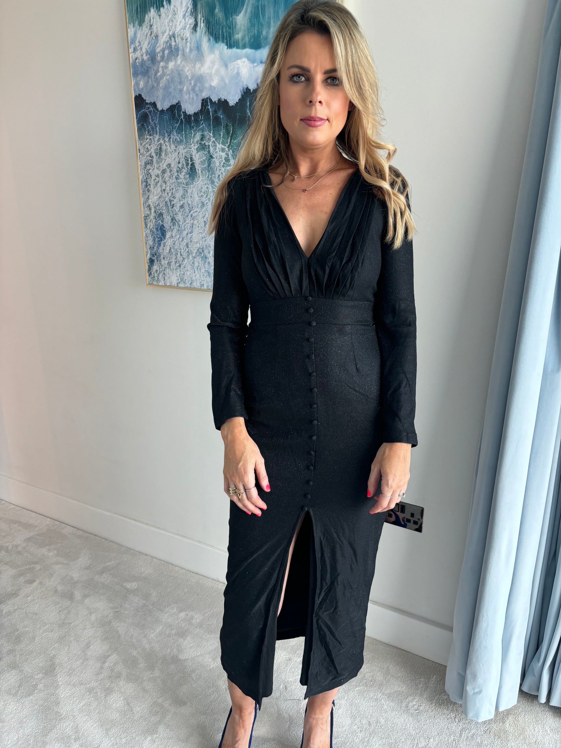 We are obsessed with our new Mimi dress in a super sparkly luxe glitter