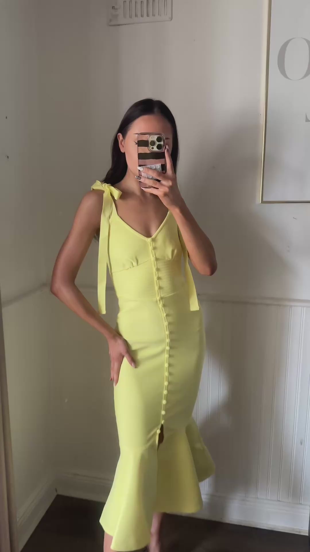 Stunning new yellow bandage dress with bow shoulders and ribbed flattering design!